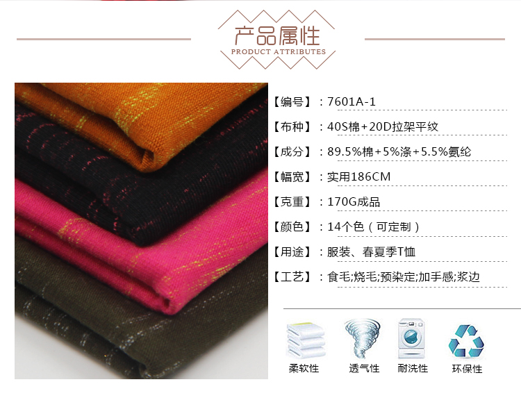 7601A-1 Spring/Summer (89.5%Cotton 5%Fiber 5.5%Spandex) 186CM 170G